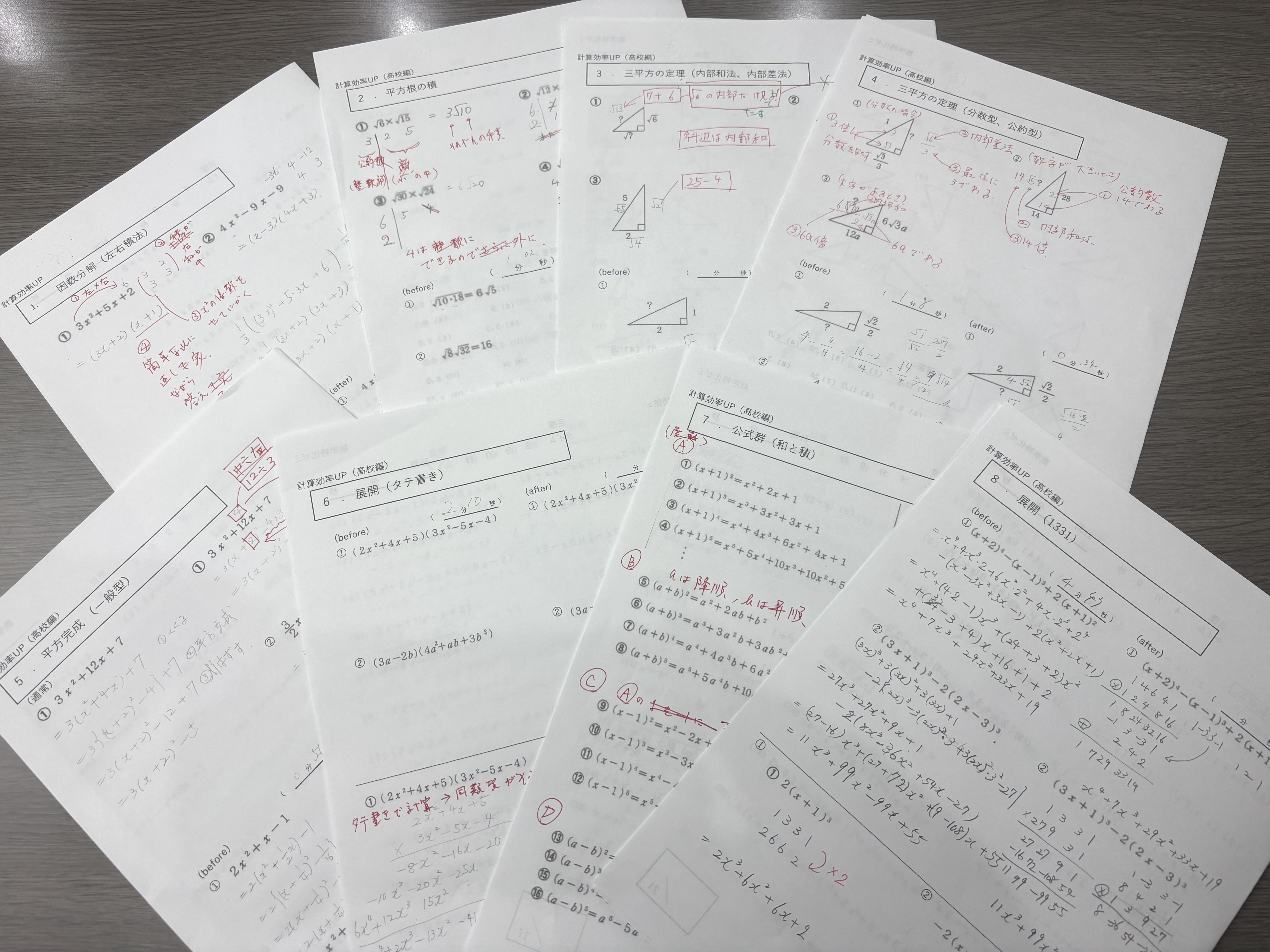 ■一人ひとりに似合った指導 生徒の苦手な分野に差し掛かった場合は、他の問題集などからプリントにして演習を重ねます。 それでも足りない場合は手作りプリントを作成したりなどして、ピンポイントに弱点に対応します。 (手作りプリント)